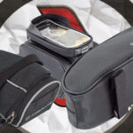 Outro modelo que também é fixado no tubo superior, junto ao tubo de direção, é a bolsa de quadro Absolute Top Bag 2. Versão mais compacta, facilita a vida do ciclista deixando tudo bem à mão, acomoda igualmente celulares de até 6,7”, com capacidade volumétrica de 1,5 litro e medidas de 20×10×9 cm.