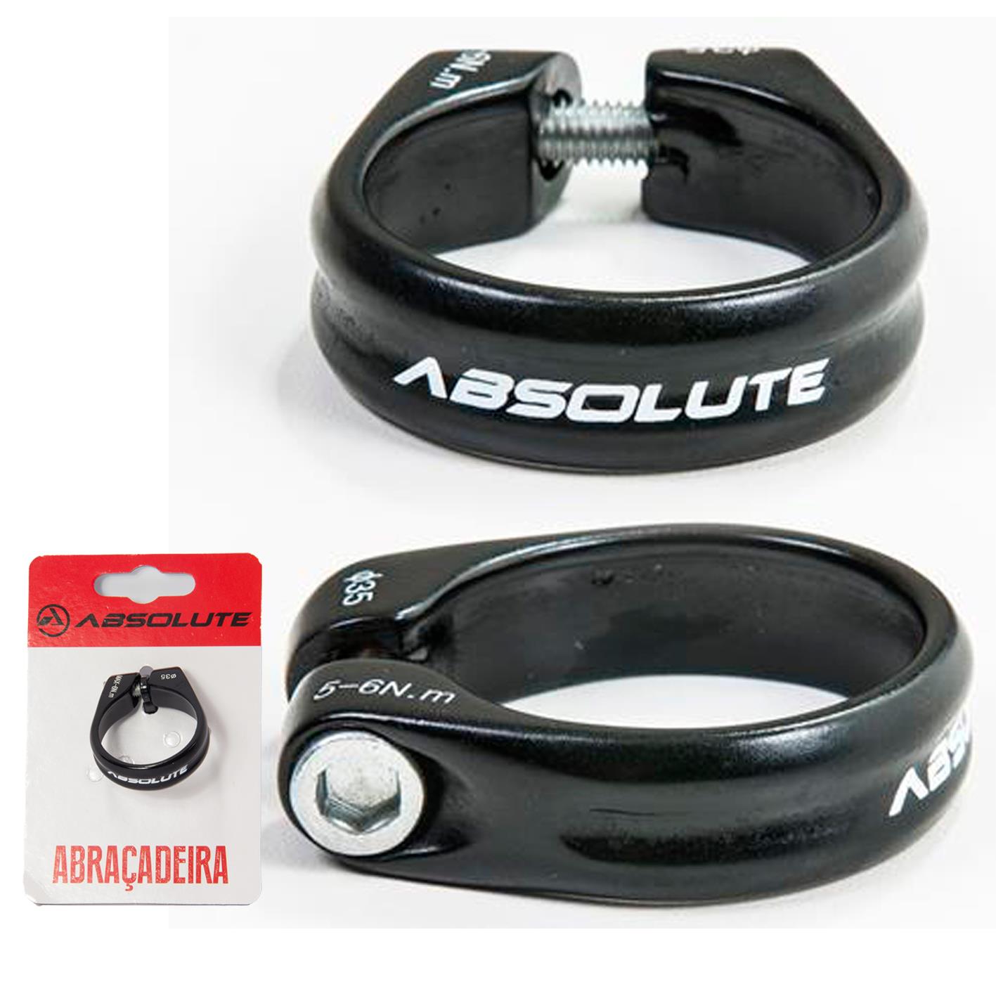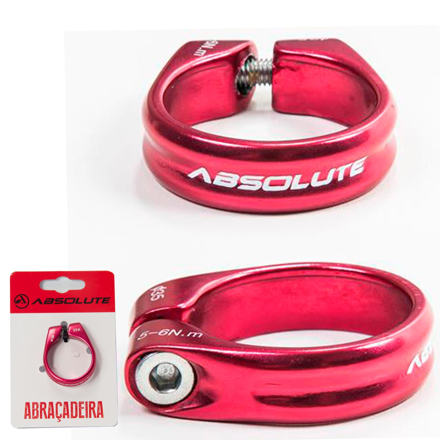 Abraçadeira De Selim ABSOLUTE AT161, Aluminio, Forjado, 31,8mm, Preto, c/ Parafuso, Variações: vermelho e preto