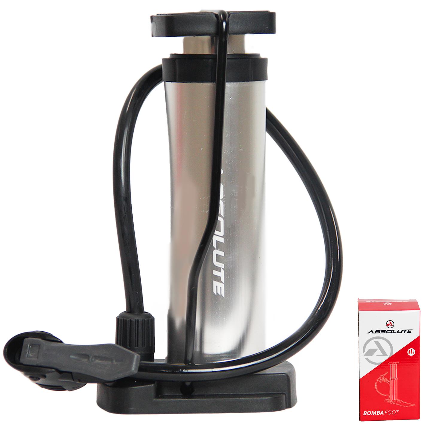 Bomba de chão Absolute Foot polida, com acionamento pelo pé, para válvula Presta e Schrader