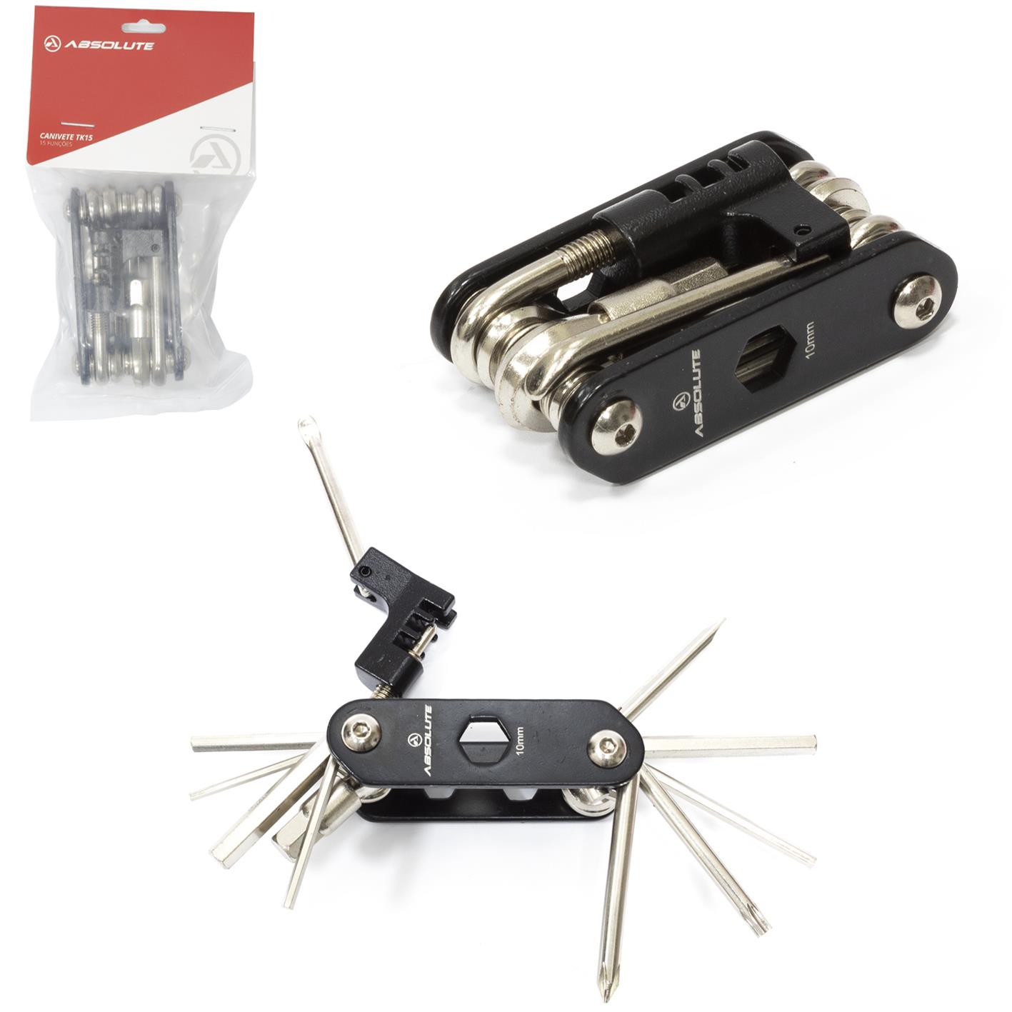 Canivete Absolute TK15, 15 funções, c/ allen 2/2.5/3/4/5/6 e 8mm, fenda, philips, torx, chave de corrente, boca 8, 9 e 10mm e espátula