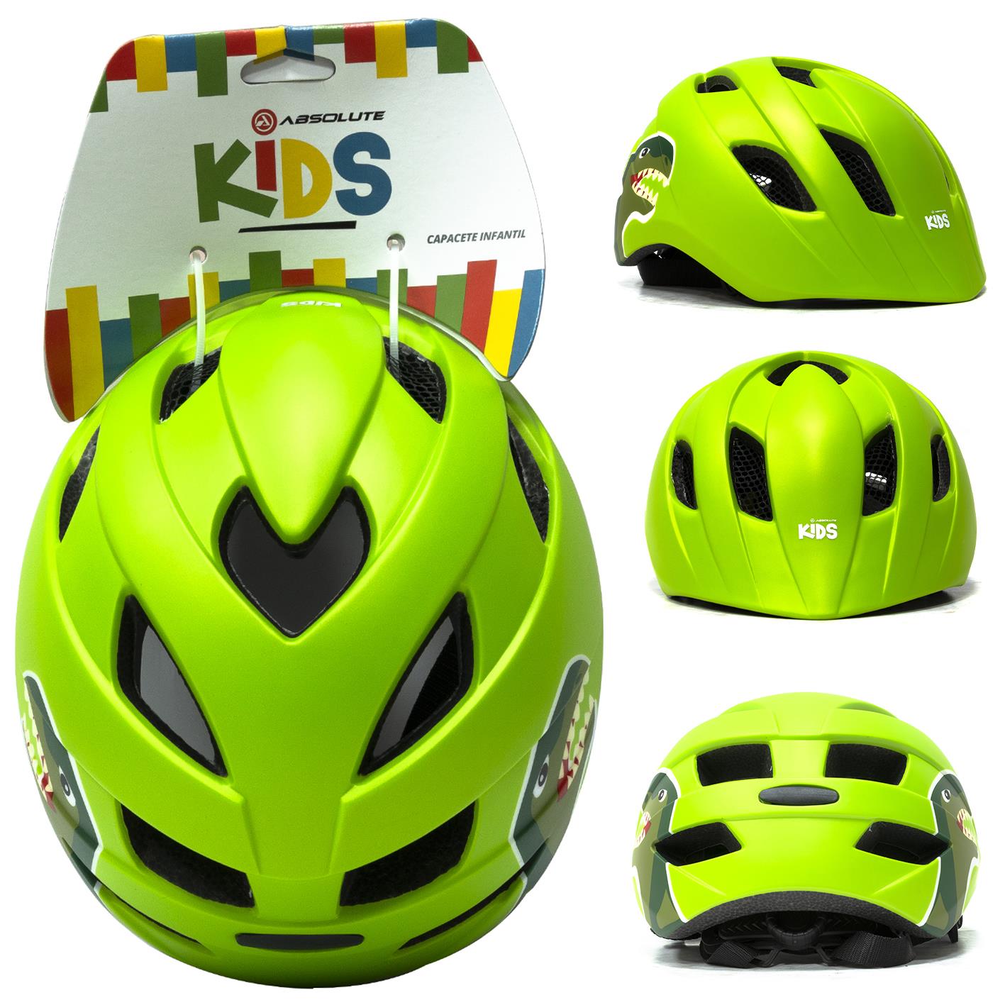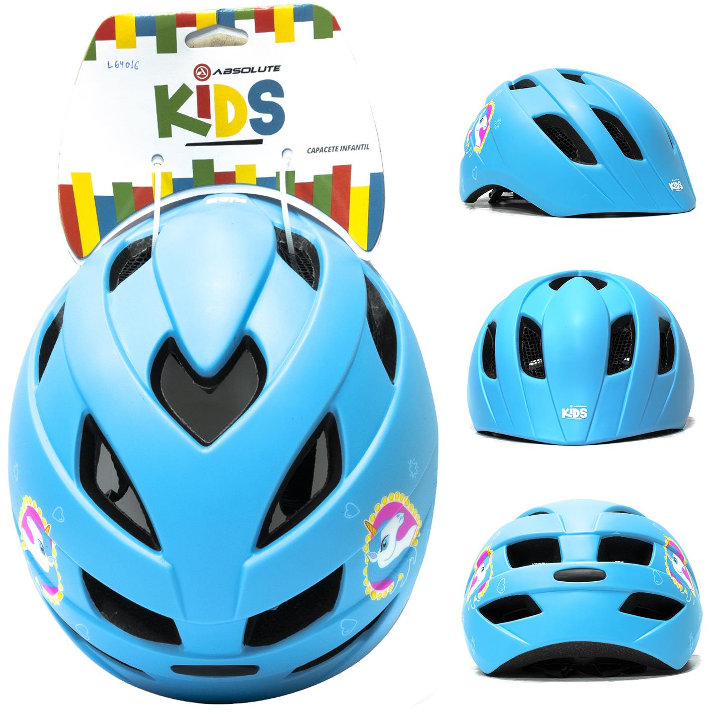 Capacete Absolute Kids Roll, 9 Entradas de Ar, Inmold, c/ Ajuste, Variações: azul tubarão, azul unicórnio, rosa princesas, verde dinossauros, tamanhos: P/M, M, M/G, G