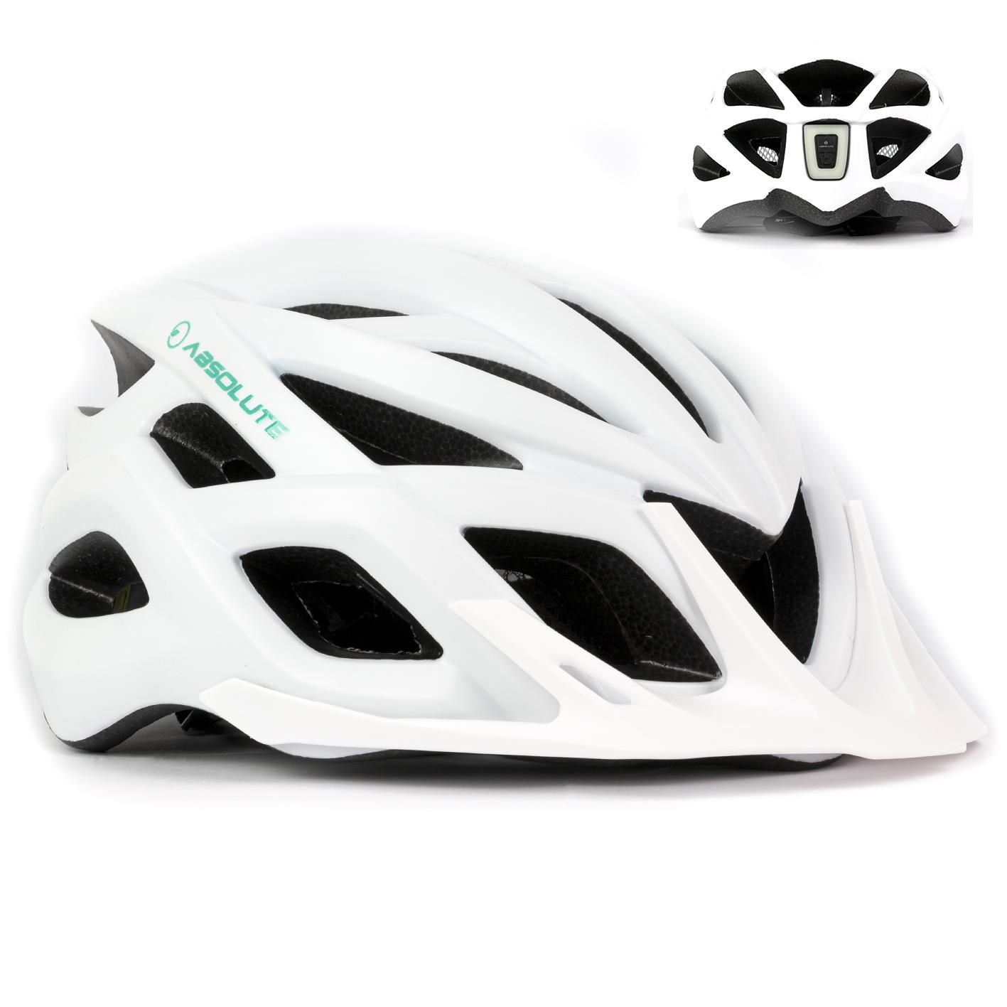 Capacete Absolute Luna Flash, Inmold, c/ Viseira, Pisca USB 9 Modos Integrado ao Casco, Tamanho M (54-57cm), Variações: branco/verde e preto/rosa