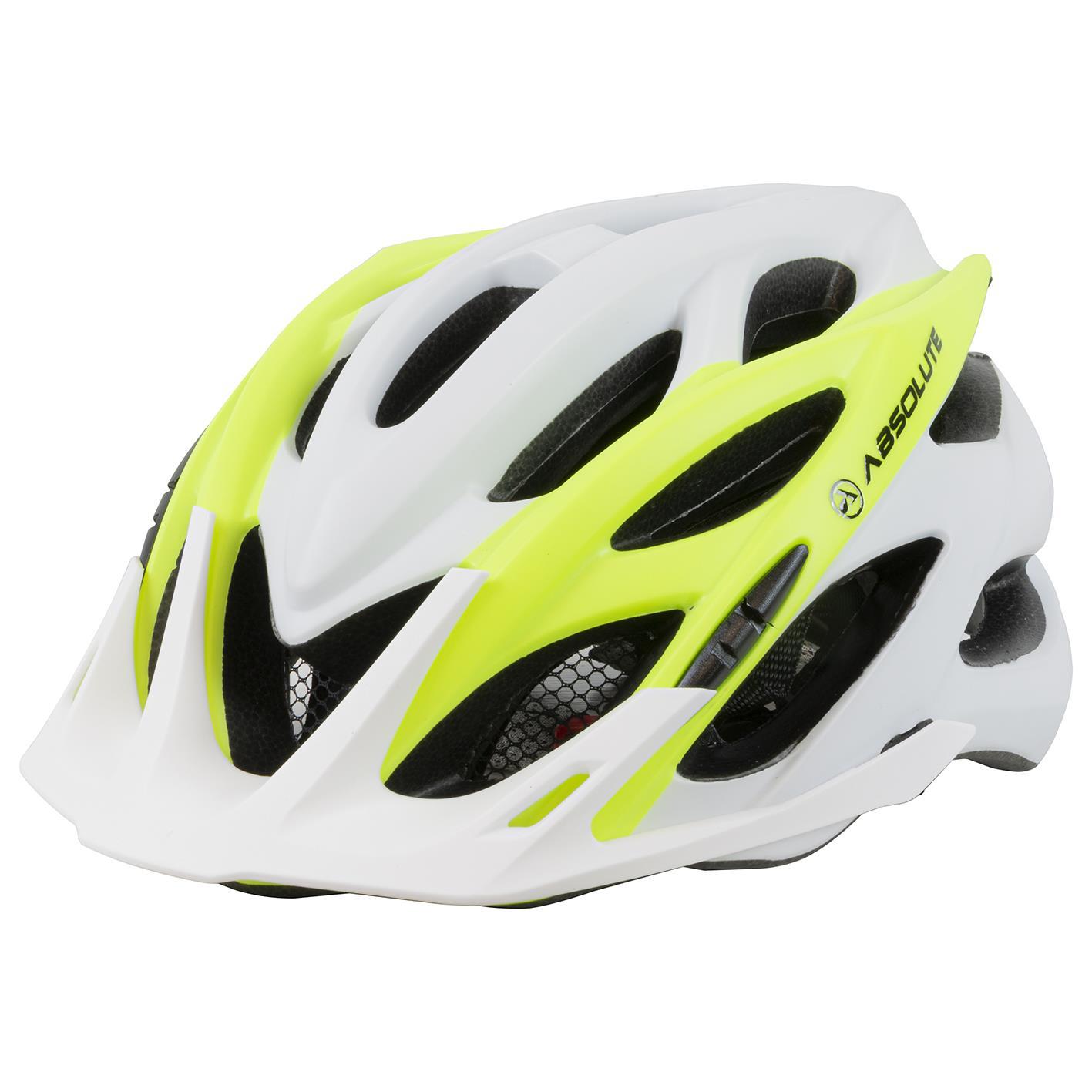 Capacete Absolute Wild, Inmold, c/ Viseira, Pisca Integrado, tamanho G (57-61cm), Variações: azul/preto, branco, branco/amarelo neon, branco/vermelho, laranja/preto, preto/cinza