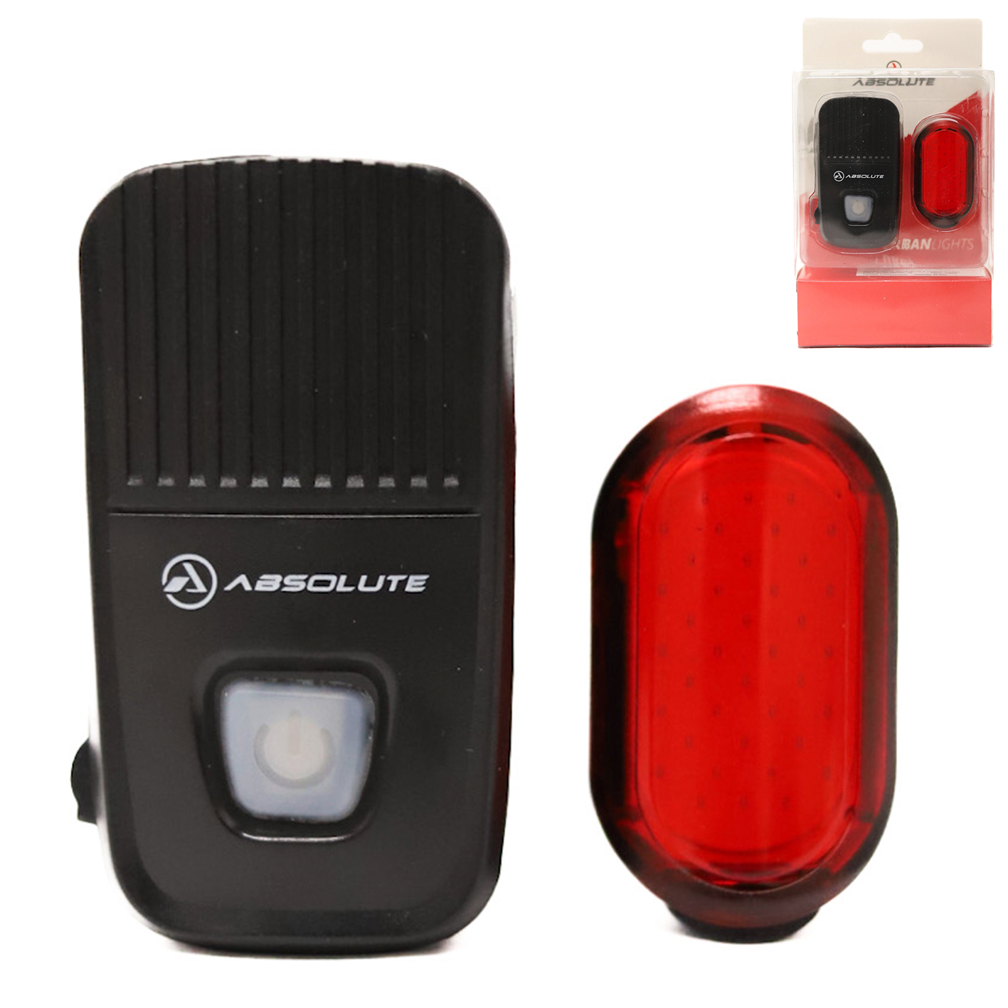 Farol e Pisca Absolute Urb Light, Recar, c/ USB-C, 1 Led Cree + 15 Led Chip(D+T), 240/15 Lúm, 3/3 mod, Aut 5/6 horas, Preto, Mat ABS+PC, Prova de Chuva
