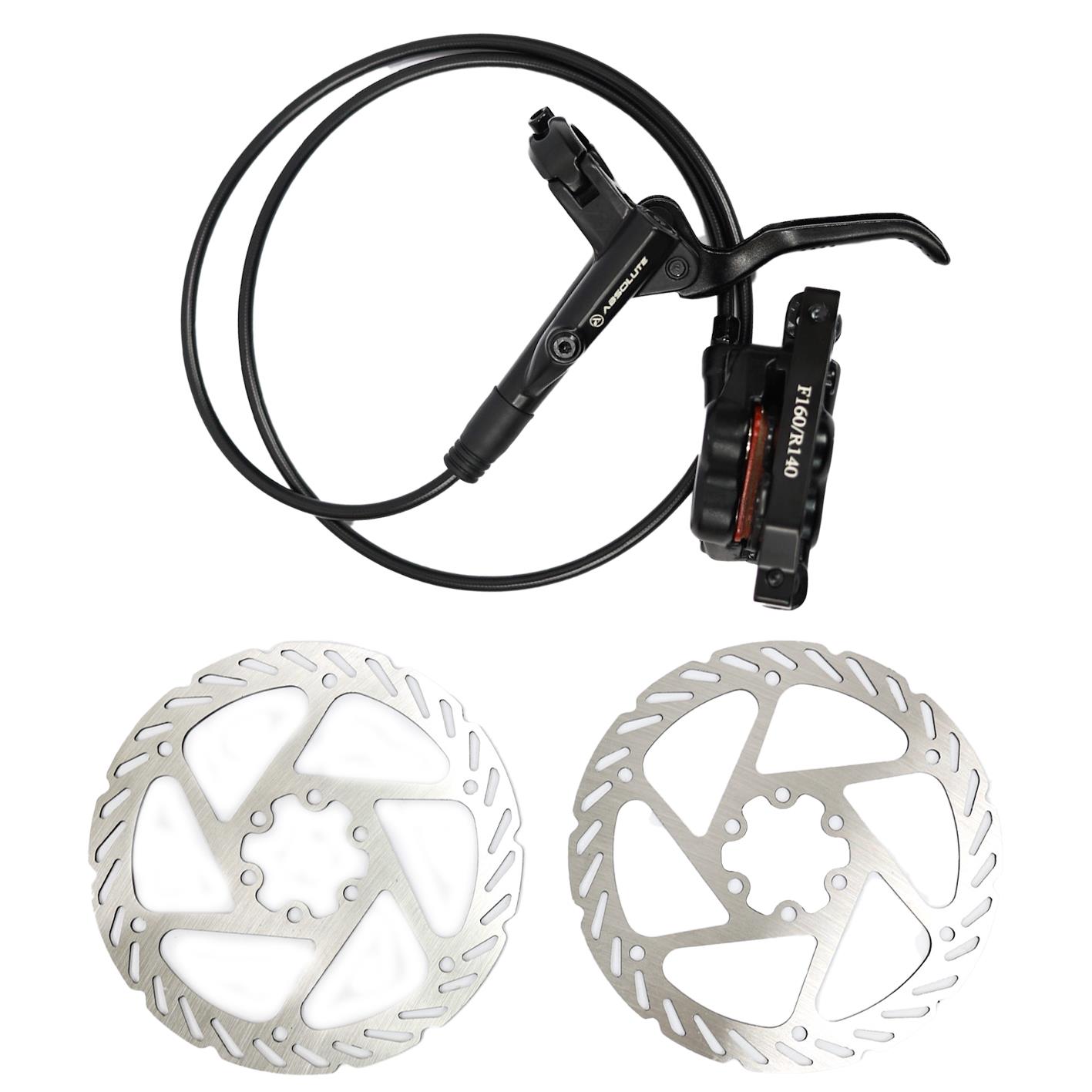 Freio a Disco Hidraulico Absolute Brutus II 4 Pistões Dianteiro/Traseiro, Discos 160mm, Mangueiras 900/1700mm, Com Adaptadores, Pastilha orgânica