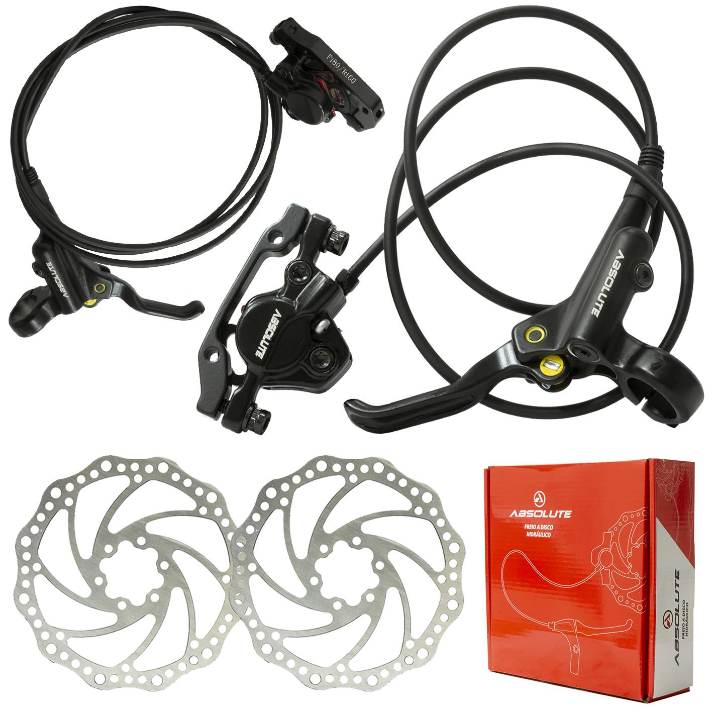 Freio Disco/ Macaneta Hidráulico, Dnt/Tras, Dxu-1901, Alum, Preto, Stand/ PMount, Duplo Pistao, 2X Rotor 160mm, Mangueira 900/1600mm, 980G – Absolute
