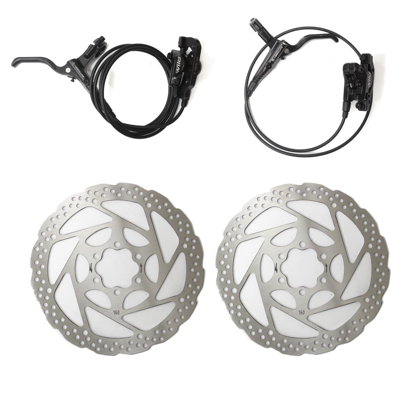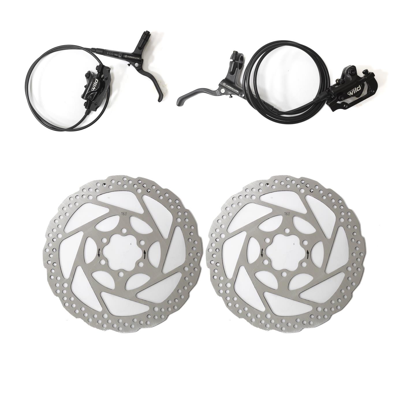 Freio A Disco Hidraulico Absolute Wild 2, 2 pistões Dianteiro/Traseiro, Discos 160mm, Mangueiras 900/1700mm, c/ Adaptadores, Variações: com e sem caixa