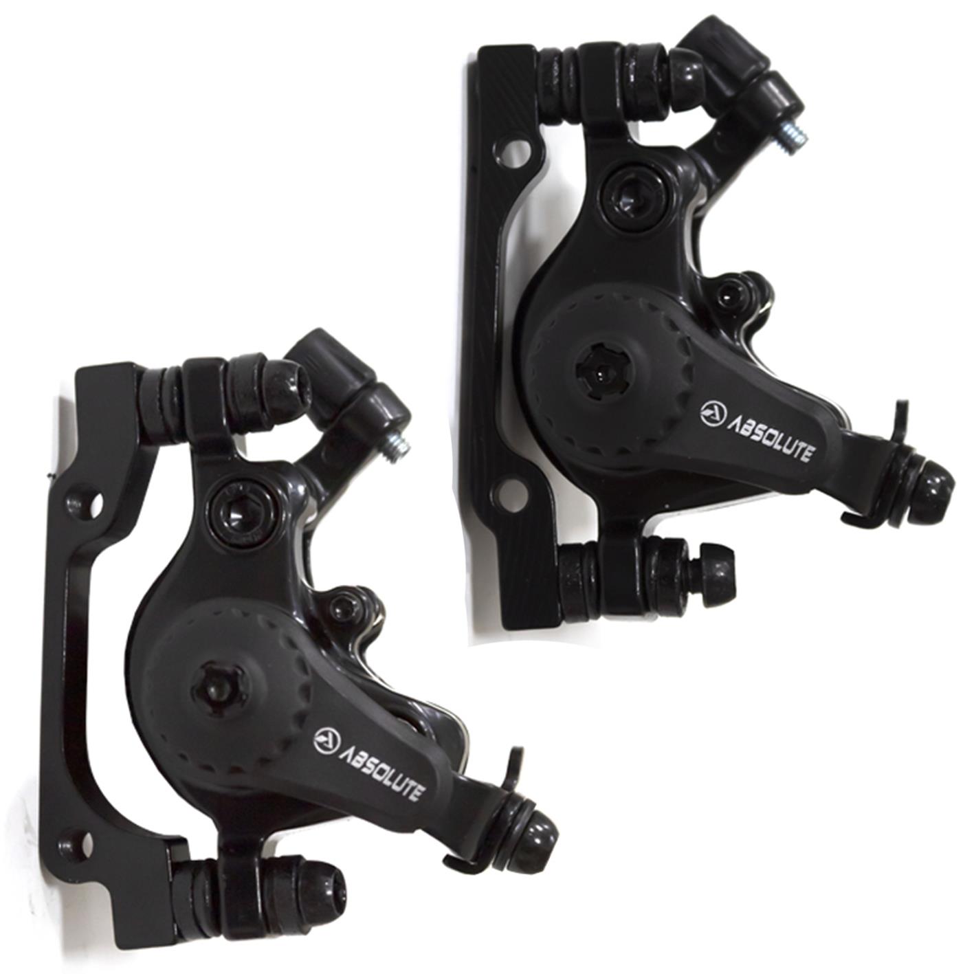 Freio a disco mecânico Absolute Dual dianteiro/traseiro, sem discos, os dois pistões se movimentam, ajuste da pastilha sem ferramentas