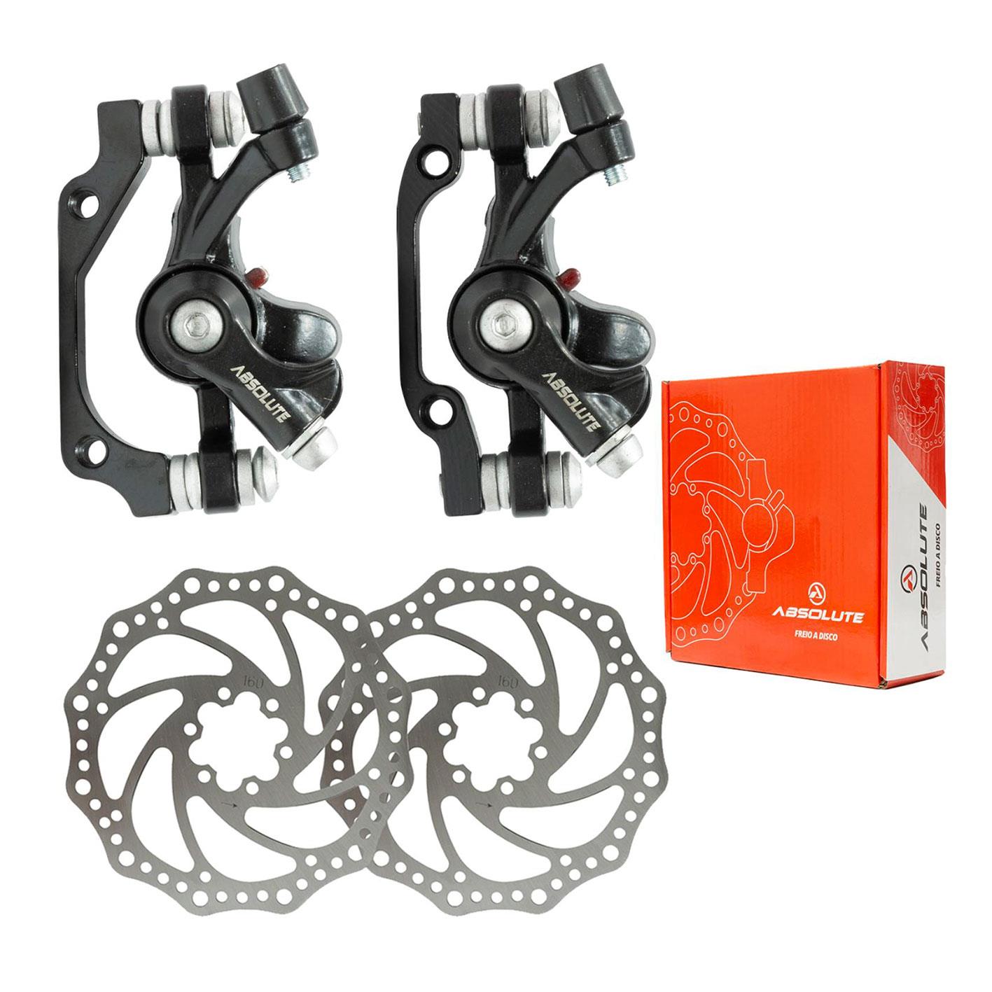 Freio a Disco Mecânico Absolute, Dianteiro/Traseiro, Aluminio, Preto, c/2X Rotor de 160mm, Parafusos, 668G, Variações: com e sem caixa