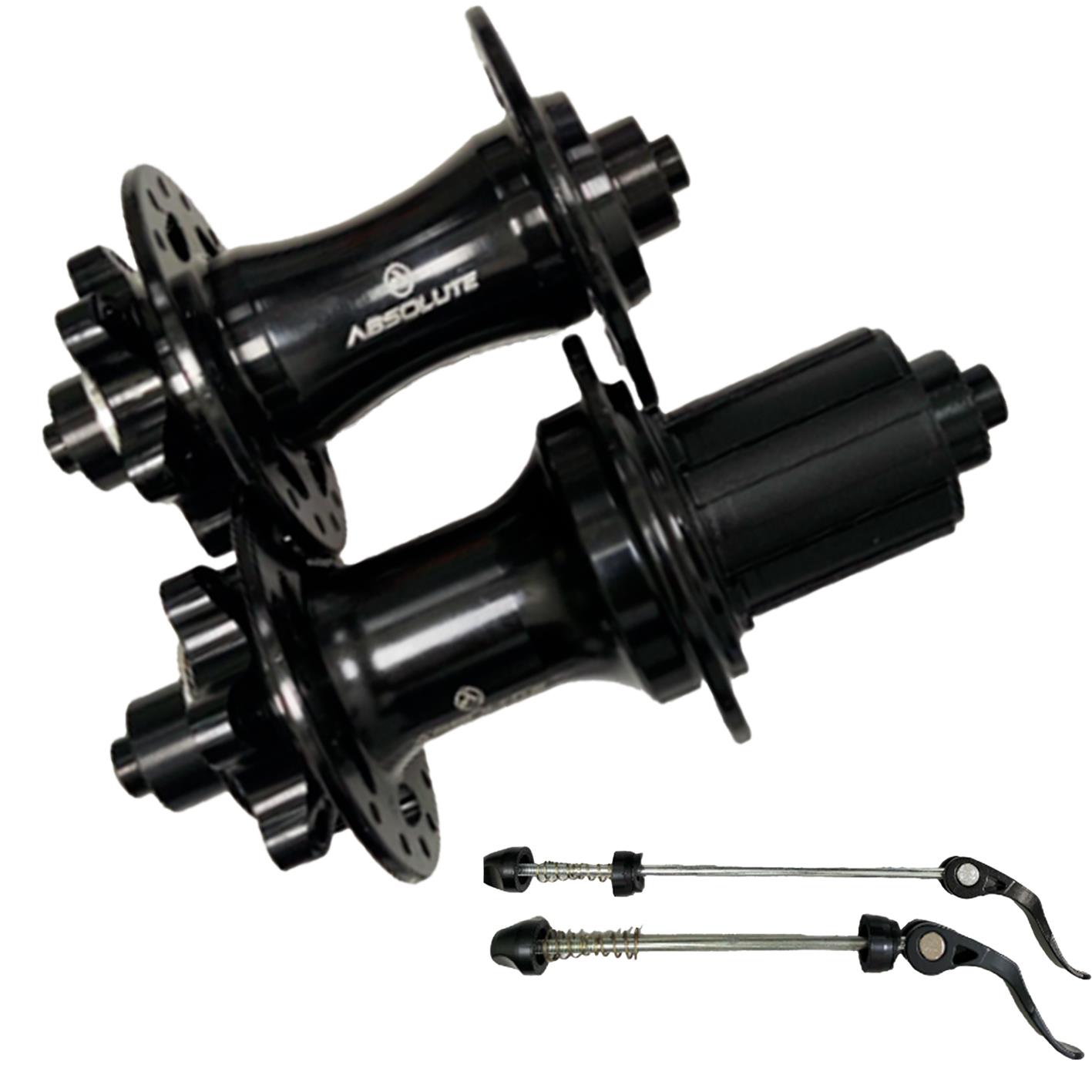 Cubo diant/tras. Absolute Prime, preto, 32 furos, p/ cassetes de 8/9/10 e 11 velocidades, p/ disco 6 furos, c/ rolamentos, c/ blocagens