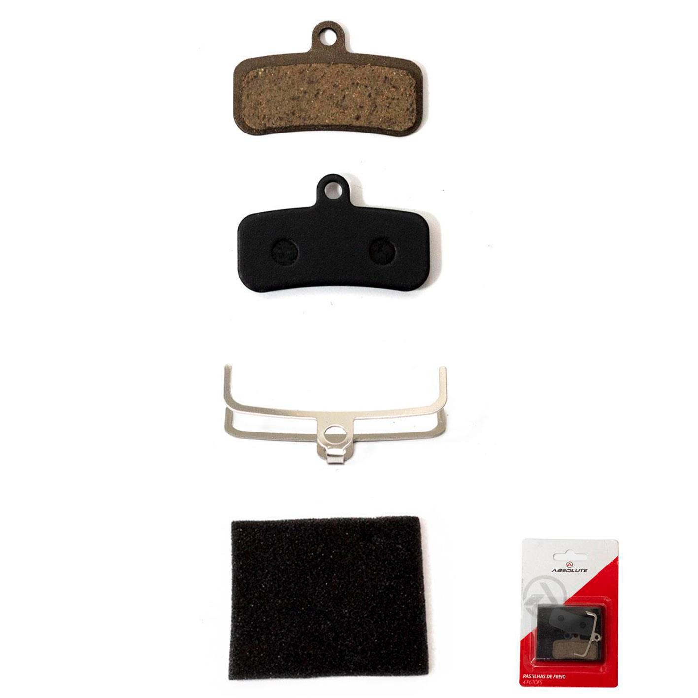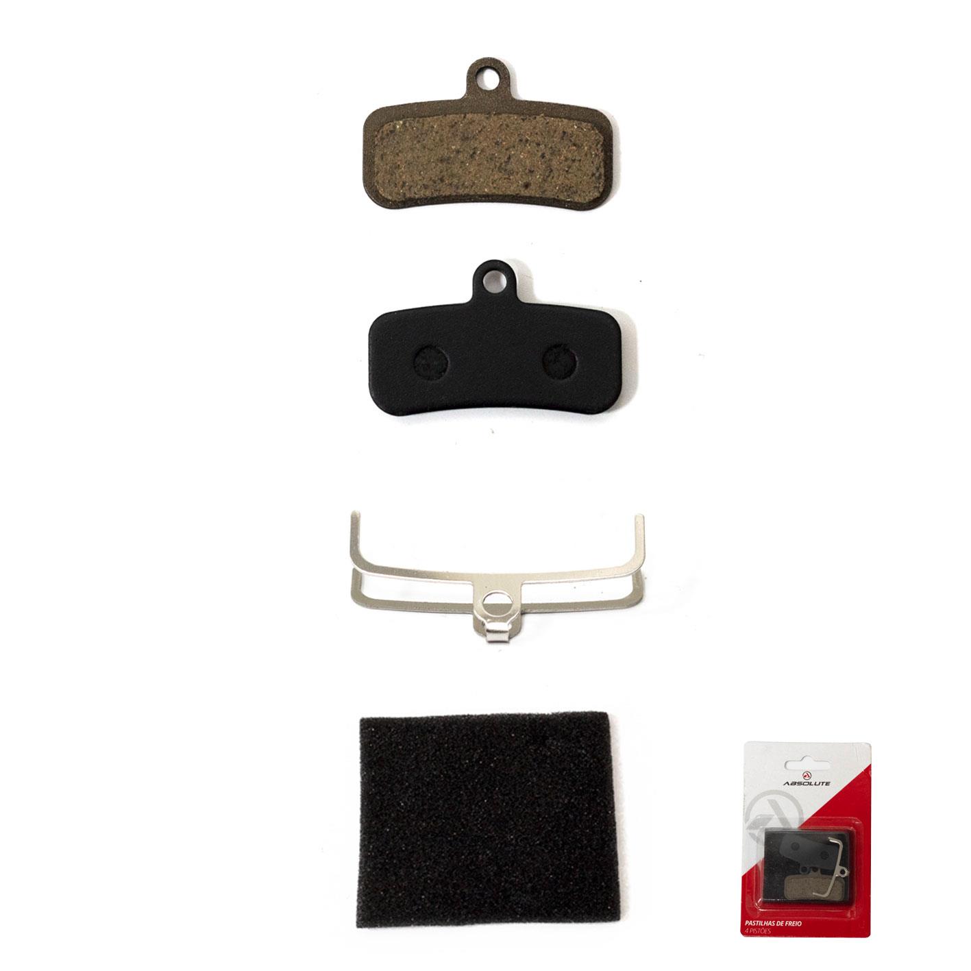 Pastilha Absolute ABS-07S, p/ Freios Brutus 4 Pistões, compat c/ Freios Shimano (Saint, Zee, XTR, XT, SLX e Deore) e TRP 4 pistões, Variações: orgânica, cerâmica, semi-metálica