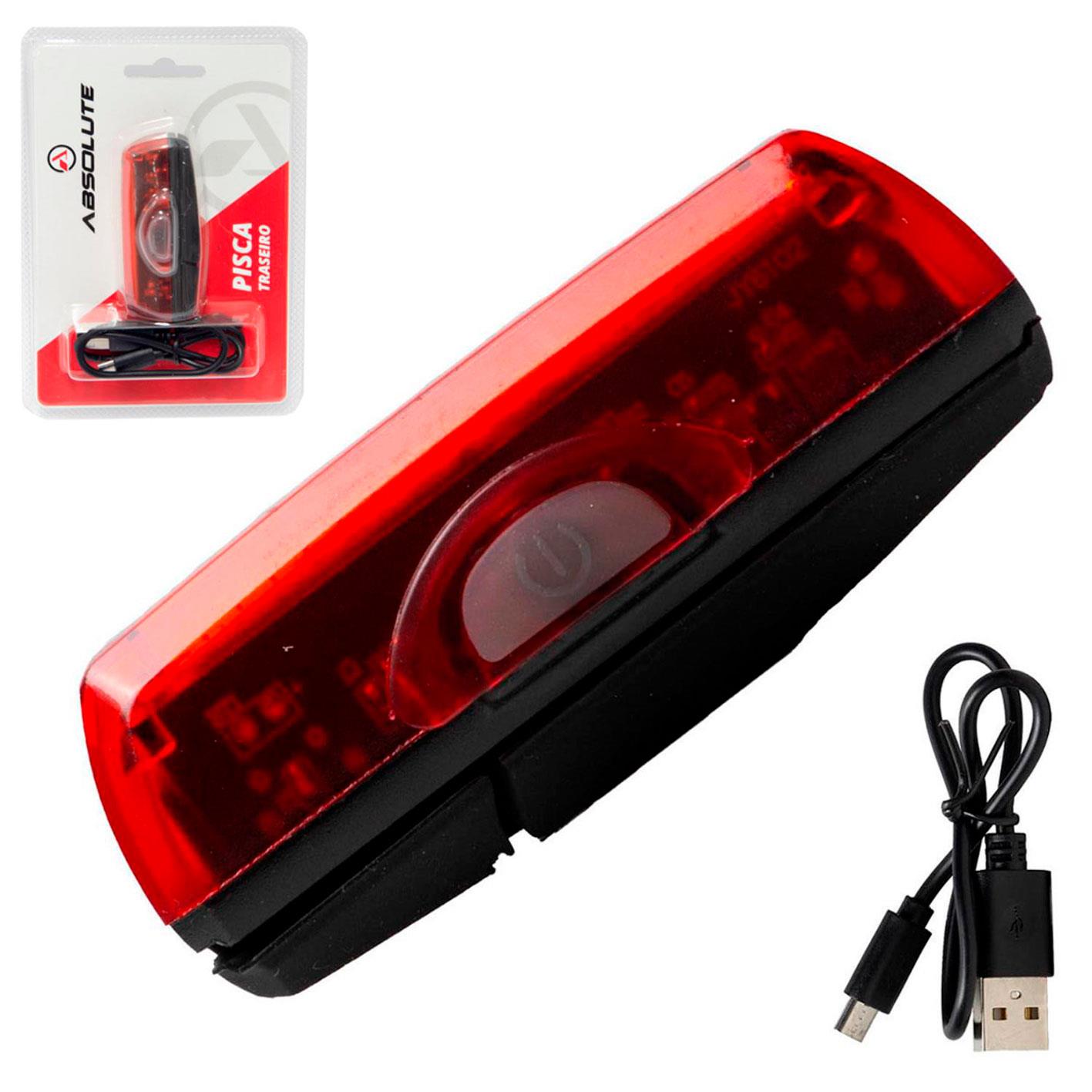 Pisca traseiro Absolute JY-6102T, 16 Leds chip vermelhos, 8 modos, recarregável via USB, a prova de chuva