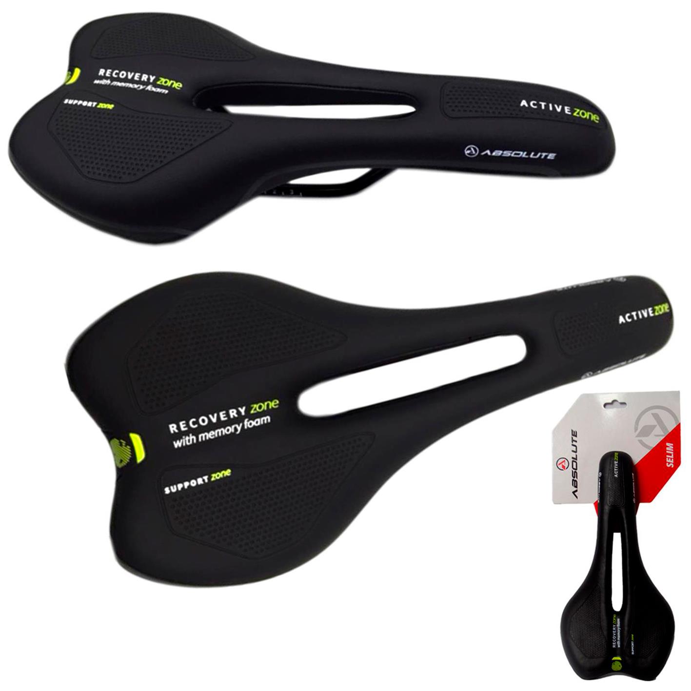 Selim Absolute Atletic Preto, 280x140mm, Vazado, Trilhos em aço, Tecnologia Memory Foam