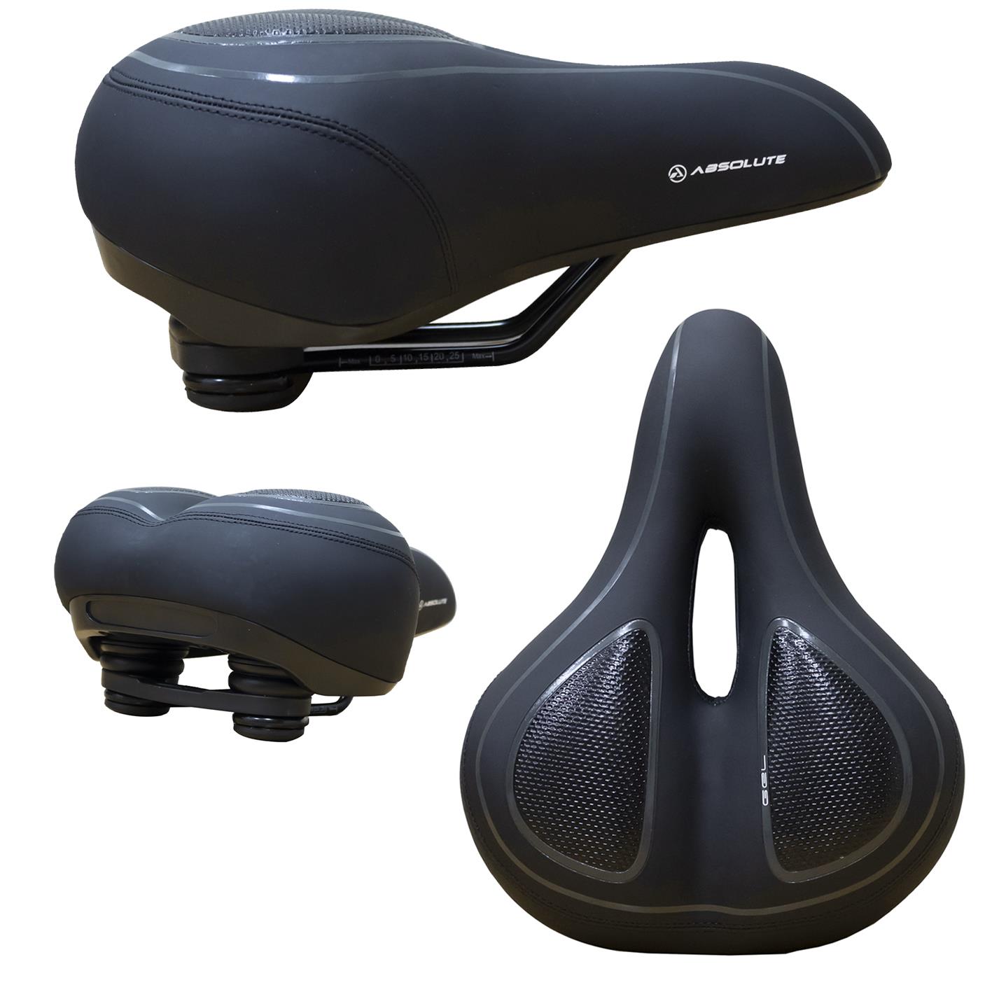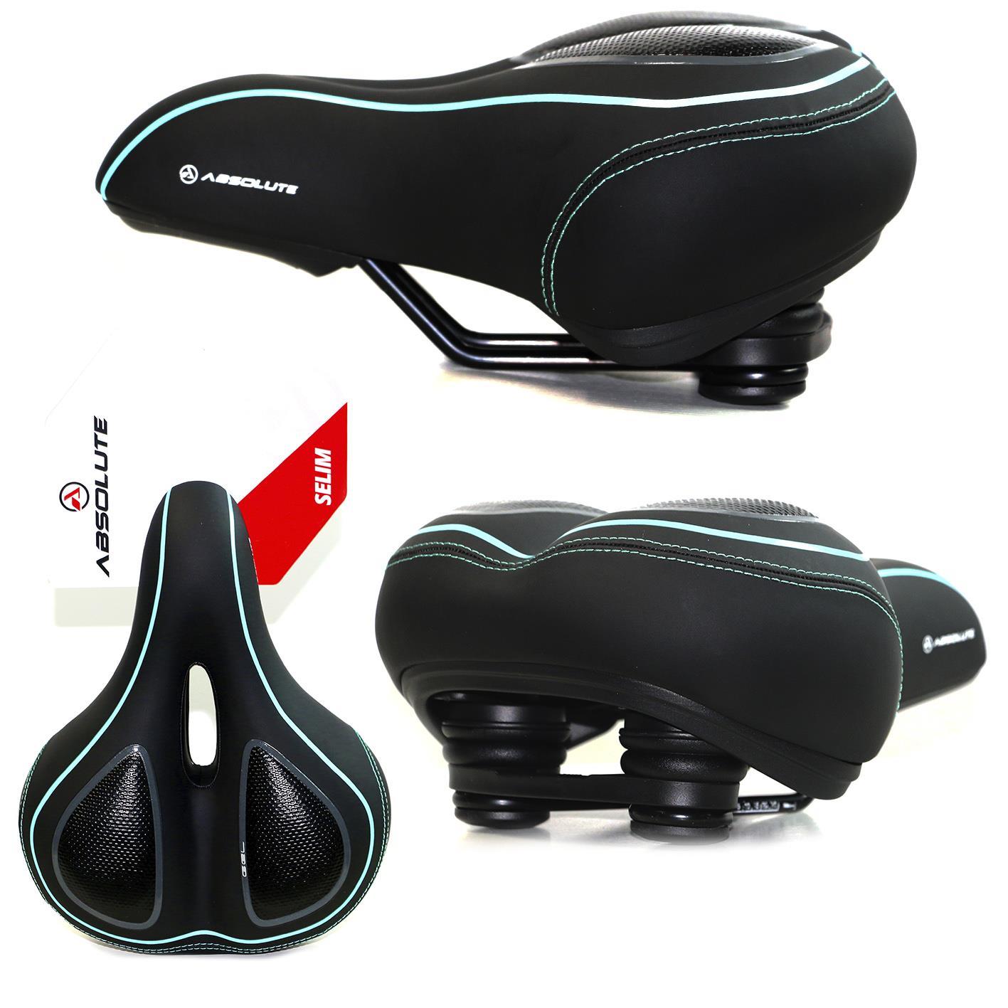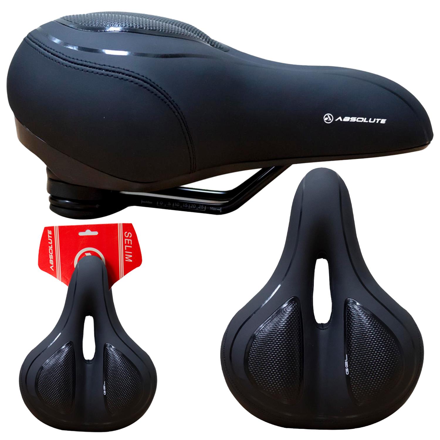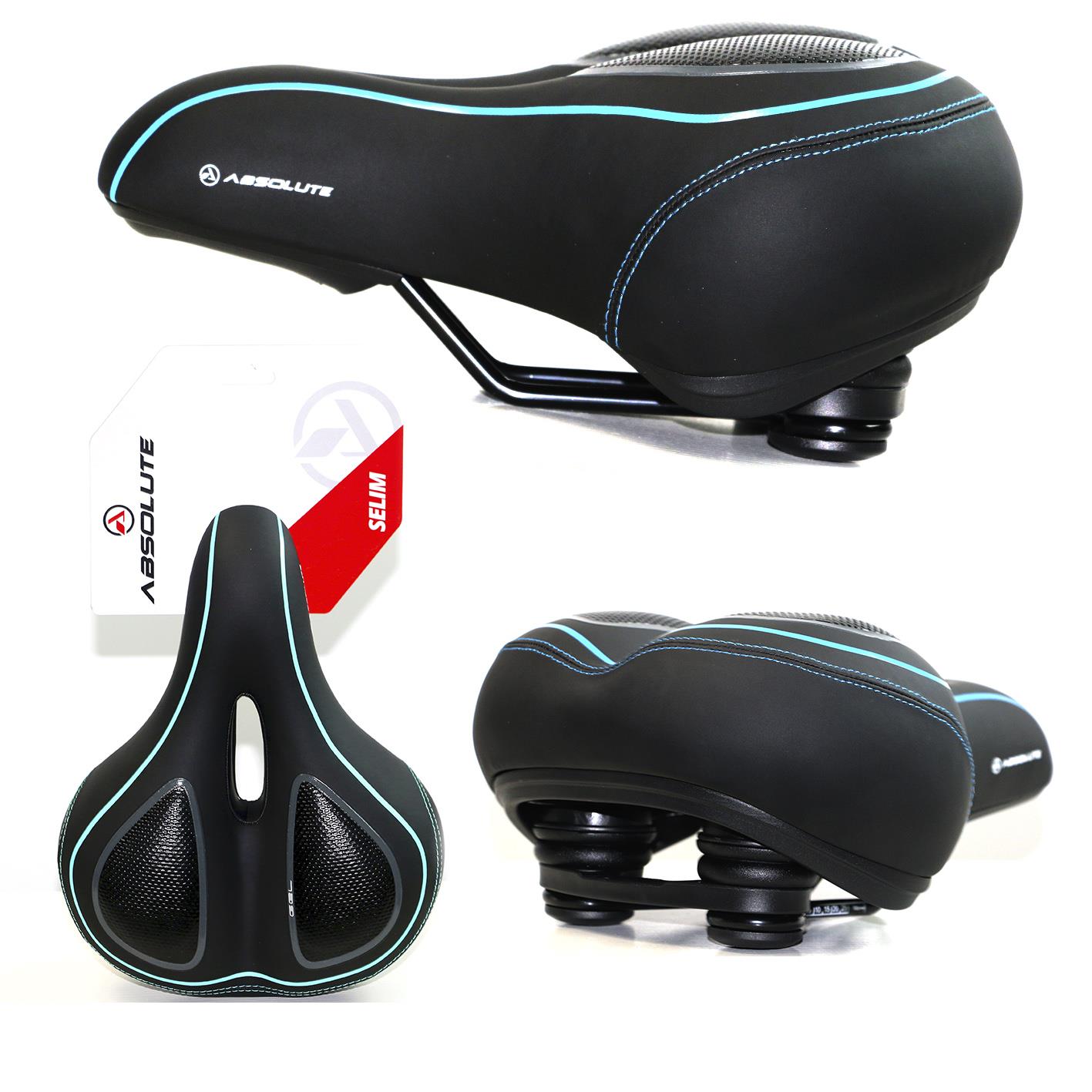 Selim Absolute Comfort, Vazado, Trilhos em Aço c/ Apliques em Gel Molas de Elastômero,